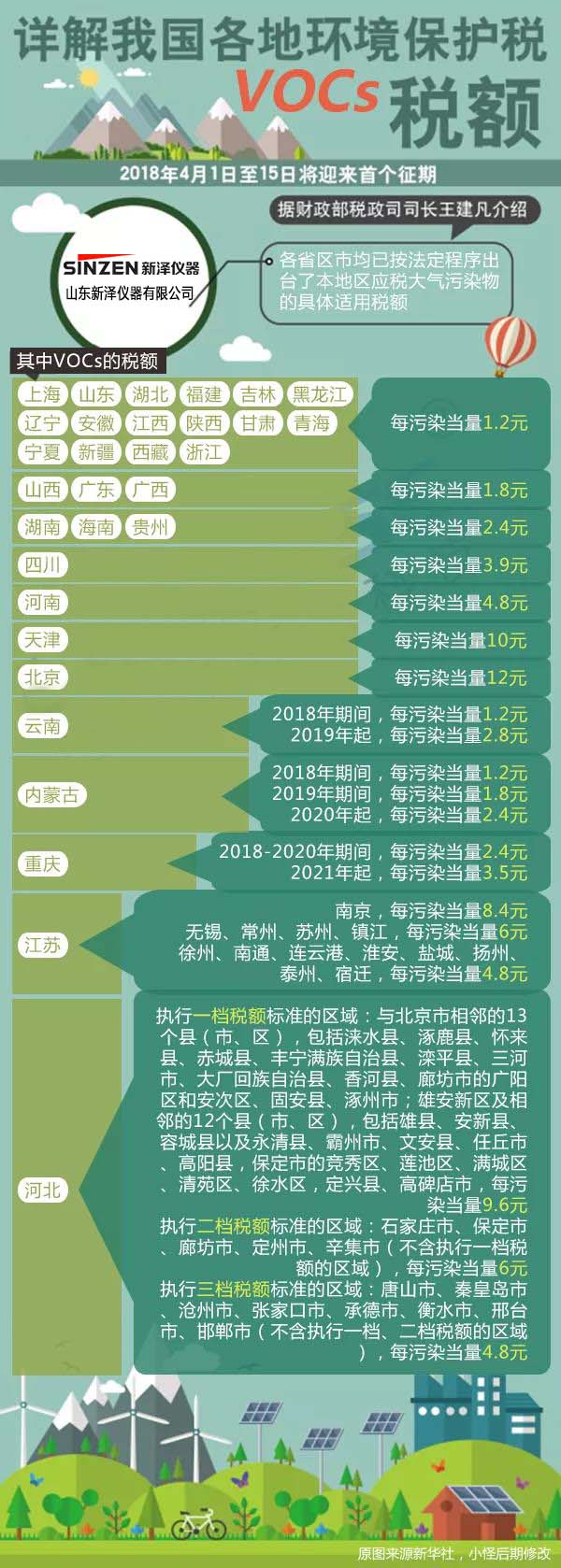 不同省市針對VOCs的應稅污染物適用稅額標準為多少呢?
